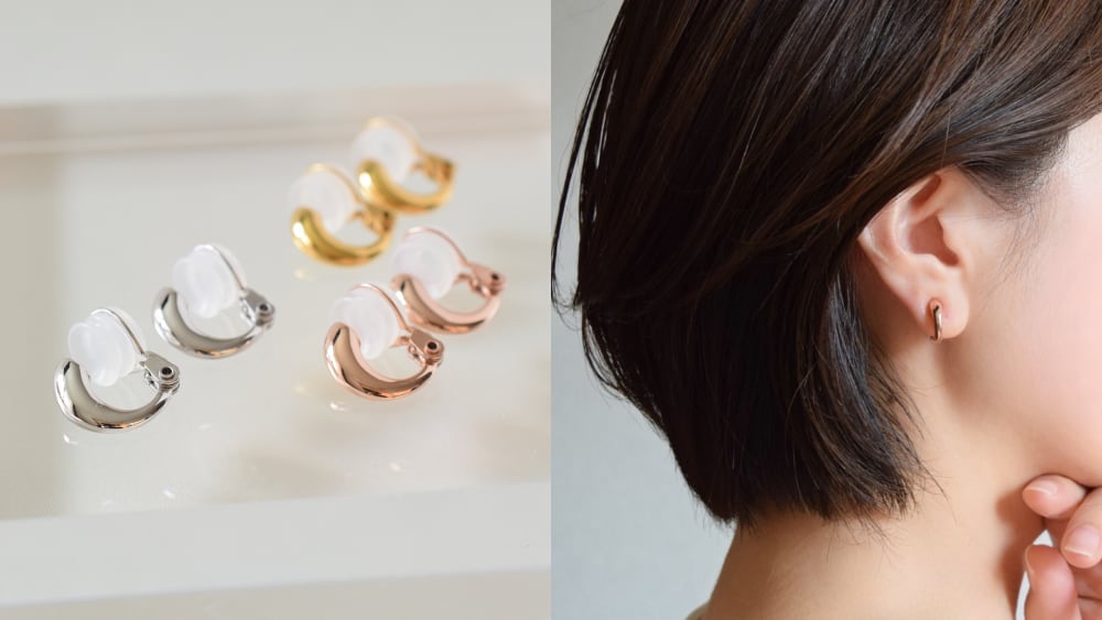 イヤリングは「福耳だから痛くなりやすい」「耳たぶが薄くて落ちやすい」というお悩みを持つかたに喜ばれています。