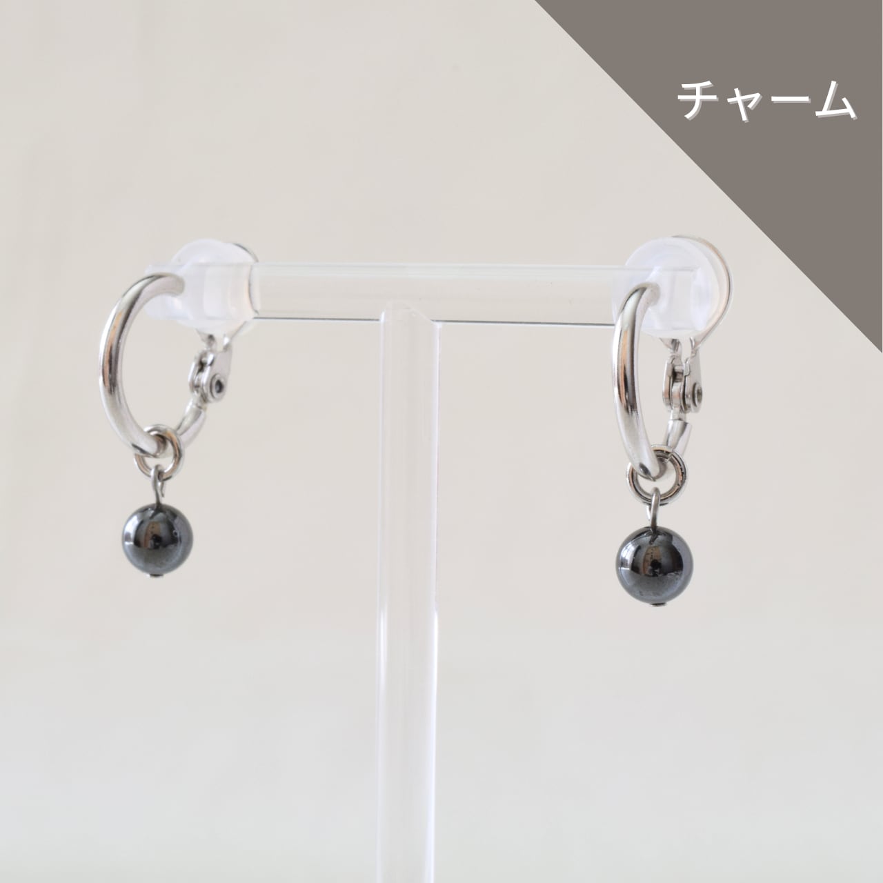 フープイヤリング用チャーム[ヘマタイトストーン/シルバー]