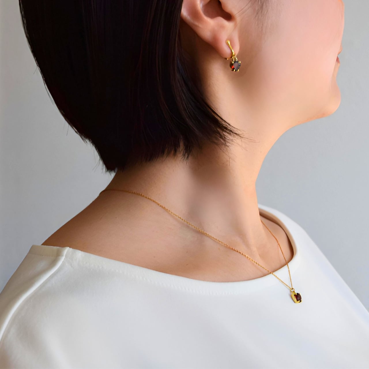 -set- ガーネット ◆1月誕生石◆ [silver925]新型ソフトタッチイヤリング ネックレス セット ゴールド 痛くない 福耳ok 日本製 金属アレルギー対応 落ちない シンプル 大人 揺れる 送料無料