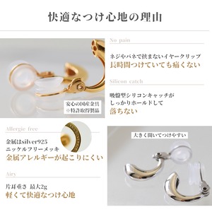 新型ソフトタッチ金具は、従来の魔法のイヤリングよりも金具部分が細く華奢で目立ちにくい仕様です。つけ心地もとても軽く、ピアス感覚でイヤリングを楽しんでいただけます。