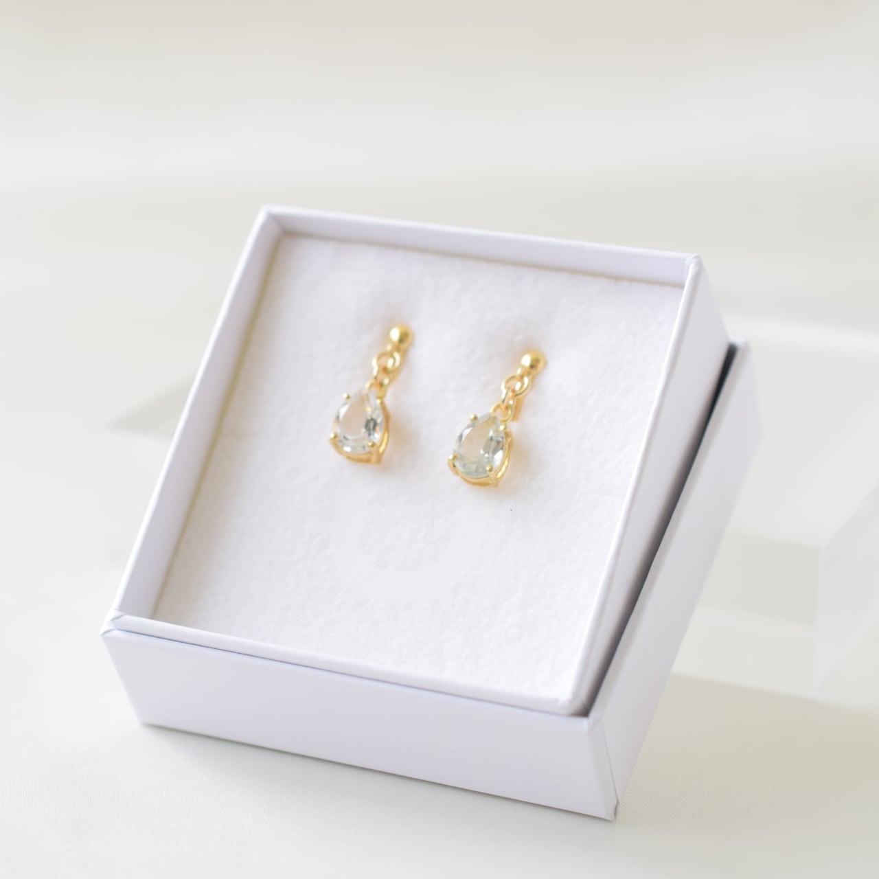 ドロップ型のファセットカットにゴールドの枠を合わせ、高貴な印象に仕上げました。
