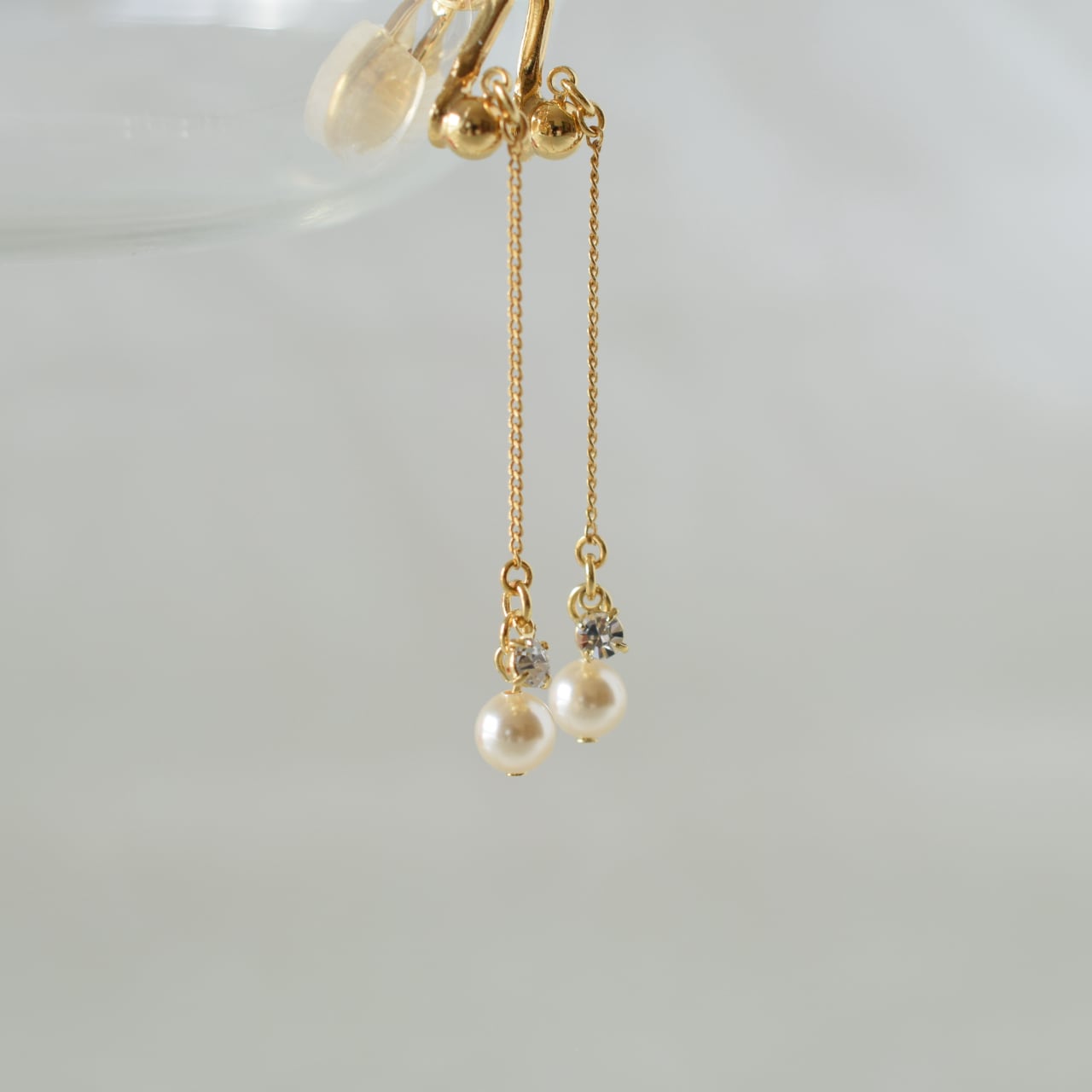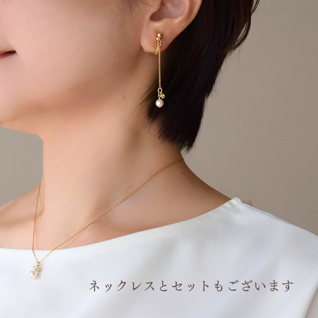 chainパール ゴールド 魔法のイヤリング 痛くない 日本製 福耳ok 金属アレルギー対応 落ちない シンプル 大人 ピアス風 揺れる 送料無料