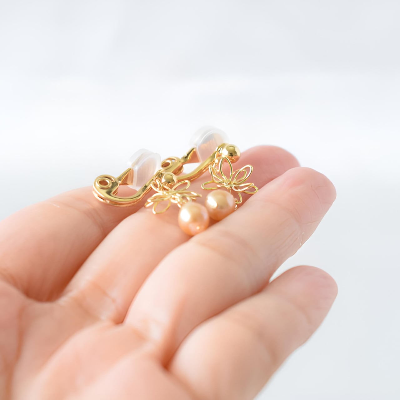 パールの色味はピンクベージュ系シャンパンゴールド。上品で肌なじみの良いお色味です。