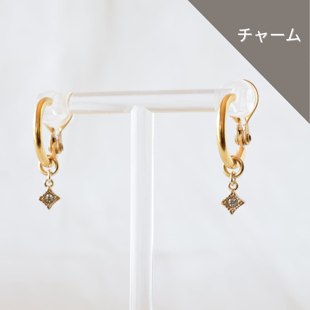 ご好評いただいておりますフープイヤリング専用チャームの新作デザインです♪