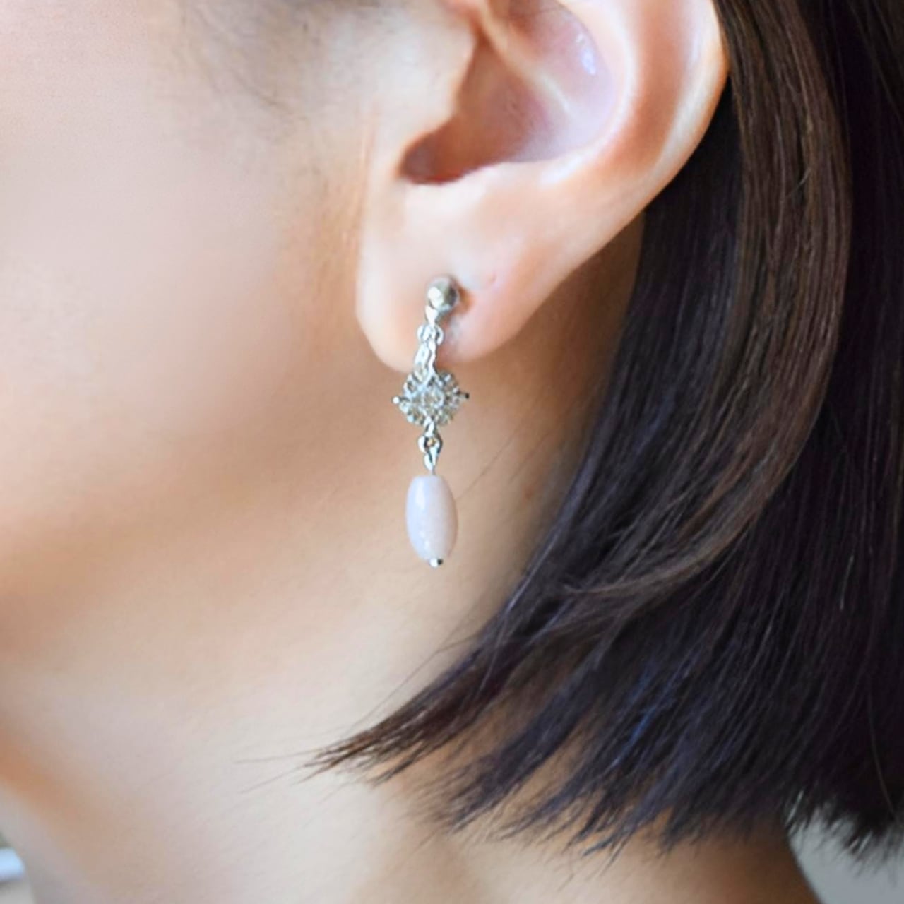 長時間痛くならない「魔法のイヤリング金具」を使用。