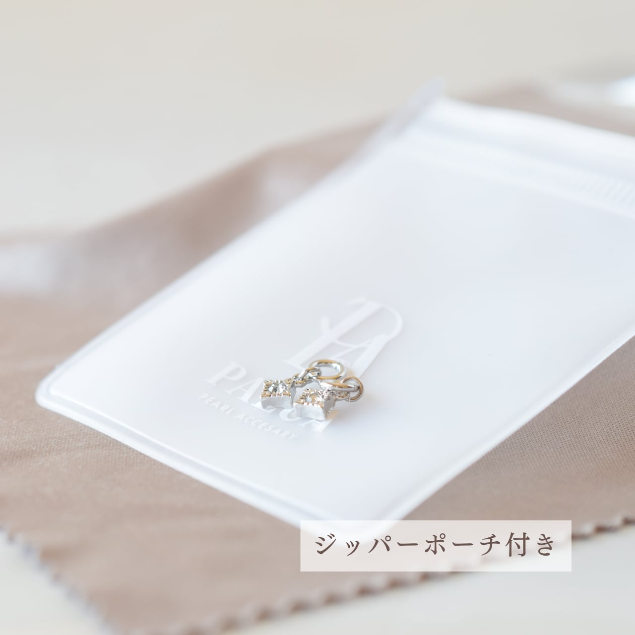 チャームの持ち運びに便利な、ジッパー付きポーチも付属しています。